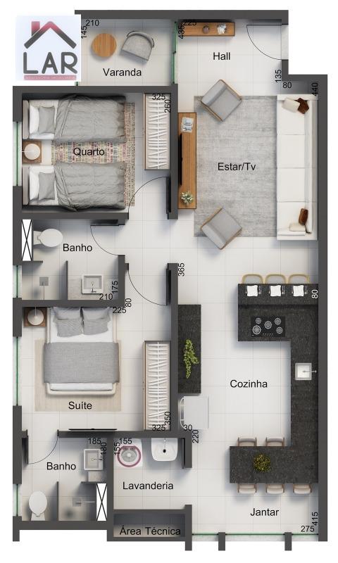 APARTAMENTO DE 02 quartos (73m²) - sala ampla, cozinha gourmet, lavanderia, quarto, banheiro, garagem coberta